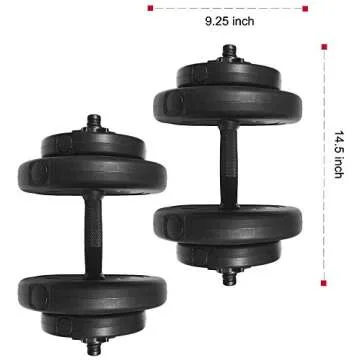 What's included: 4x 2.5 lbs and 4x 7.5 lbs vinyl cement plates, 2x 14" dumbbell handles and 4 collar locks