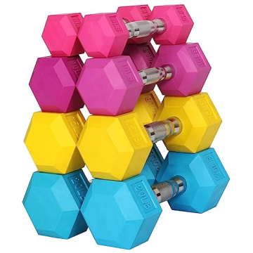 Show moreElevate your fitness regime with the Fitvids Colored Rubber Encased Hex Dumbbell Set, a versatile and robust set designed for every fitness enthusiast. This incredible 100-pound set includes pairs of 5LB, 10LB, 15LB, and 20LB dumbbells, providing a broad range of weights that cater to every workout, whether you’re engaging in full-body exercises or targeting specific muscle groups.