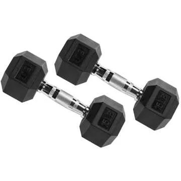 Show moreIntroducing the Fitvids Premium Rubber Encased Hex Dumbbell, 15LB Pair, your ultimate workout companion designed for enthusiasts and fitness beginners alike. These high-quality dumbbells are encased in robust rubber, ensuring outstanding durability while protecting your floors from damage. The solid cast construction offers precision accuracy for all your training needs, making these dumbbells the perfect addition to any garage gym or home fitness setup. Aimed to provide a reliable and comfortable workout experience, the chrome-finished contoured handles are ergonomically designed to fit your grip for maximum comfort. Not only do they look great, but their hexagonal shape prevents rolling, allowing for easy storage.