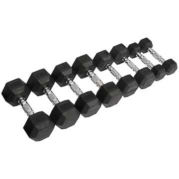 Fitvids Rubber Encased Hex Dumbbell, Set Including 5, 10, 15, 20LB Pairs