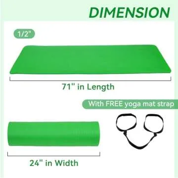 Show moreDiscover the perfect blend of comfort, durability, and performance with the Fitvids Yoga Mat, meticulously designed to enhance your yoga and exercise experience. Measuring an impressive 71" long by 24" wide, this premium yoga mat accommodates individuals of all shapes and sizes, providing ample space for all your stretches and poses. Crafted from high-density foam material, the mat features a generous 1/2-inch thickness that effectively cushions and supports your spine, hips, knees, and elbows, allowing you to focus on your workout without any discomfort.