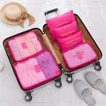 FiveRen 6 PCS Packing Cubes Set Travel Luggage Organizers Suitcase Travel Accessories, Rose
