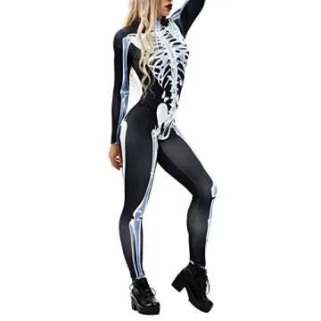 Fixmatti Adult Full Bodysuit Unitard Costume Zentai Suit with Skeleton Printing Halloween Suit S