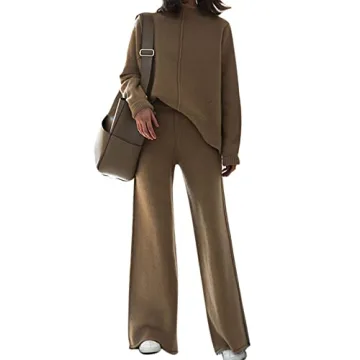 Show moreIntroducing the Fixmatti Two Piece Outfit for Women, a versatile and chic knit sweater set that perfectly blends comfort with style. This set includes a high neck long sleeve pullover top paired with matching wide leg pants designed to enhance your silhouette while providing ultimate relaxation. Made from a cozy, lightweight knitted fabric, it's ideal for layering during the chilly months of Spring and Fall. Whether you're lounging at home or stepping out for errands, this outfit adapts effortlessly to any casual setting and guarantees you’ll look put together without sacrificing comfort.