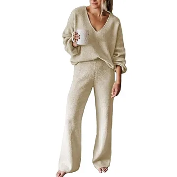 Fixmatti Women's Cozy 2 Piece Knit Sweatsuit - Stylish Lounge & Casual Outfit