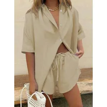 Introducing the Fixmatti Women 2 Piece Y2K Outfits – an effortlessly stylish ensemble that combines chic fashion with unparalleled comfort. This striking set features a loose-fit, half sleeve button-down shirt and a high-waisted pair of mini shorts, making it the perfect choice for a range of casual and semi-formal occasions. Crafted from soft, breathable fabric in a classic solid khaki color, this outfit enhances your silhouette while providing the versatility to express your unique style....