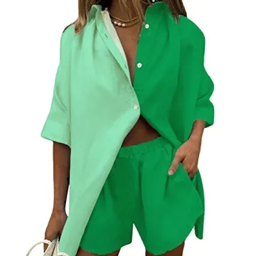 Show moreIntroducing the **Fixmatti Women Color Block 2 Piece Outfits** – the ultimate blend of style and comfort that every woman deserves in her wardrobe! This charming set features a chic half sleeve button-down shirt and matching high-waisted shorts, perfect for those who seek elegance without compromising on ease. The shirt’s V-neck turn-down collar not only enhances its sophisticated look but also ensures breathability, making it ideal for hot summer days. With its loose fit design, you can style it effortlessly over a cami, tunic, or even a cute t-shirt, allowing for versatile fashion choices that cater to any occasion.