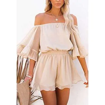 Show moreStep into ultimate summer chic with our beautiful casual summer boho chiffon romper for women, designed to make you feel fabulous and free. This stunning off shoulder flare sleeve jumpsuit is perfect for showing off your shoulders and boasts a stylish strapless design. The tie knot front adds a playful yet sophisticated touch that gives this piece its signature bohemian flair.