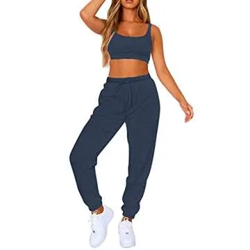 Fixmatti Women's Sweatsuit High Waisted Sweatpants Jogging Suit Lounge Pant Set Navy Blue M