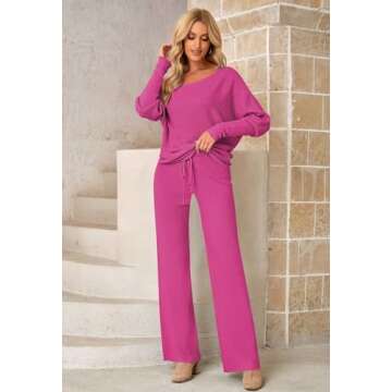 Show more Introducing the Fixmatti Women's Two Piece Knitted Outfits, a stunning combination of style and comfort that every fashionista needs in her wardrobe. This delightful sweater and wide leg pants set brings together a chic aesthetic and functional design, making it a versatile choice for both lounging at home and stepping out in style. The vibrant rose red color not only exudes warmth but also complements a variety of skin tones, ensuring you look fabulous wherever you go.