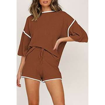 Fixmatti Womens Two Piece Outfits Shorts Sets Summer Knitted Loungewear Sweatsuit Coffee S