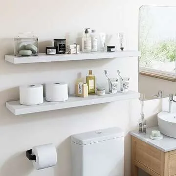 Show moreIntroducing the Fixwal 32in Floating Shelves for Wall, where elegance meets functionality! These stunning wall-mounted shelves bring both aesthetic appeal and practicality to your home's interior design. Built with a modern touch, these shelves can seamlessly blend into any room, whether it's your kitchen, bathroom, living room, or office. Ditch the clutter and embrace organized beauty with these spacious 32 x 8-inch floating shelves that are perfect for displaying small plants, photo frames, or even toilet essentials!
