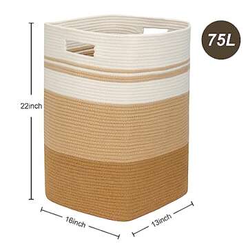 Fixwal Laundry Basket, 75L Rope Basket, 16x13x22 Inches Storage Baskets, Large Laundry Hamper, Woven Basket for Living Room, Toys, Towels, Clothes