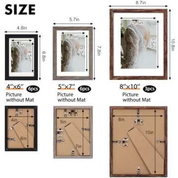 - Multiple Sizes: Our set includes three 8x10 inch dark brown frames, six 4x6 inch black frames, and six 5x7 inch light brown frames, providing endless arrangement possibilities.