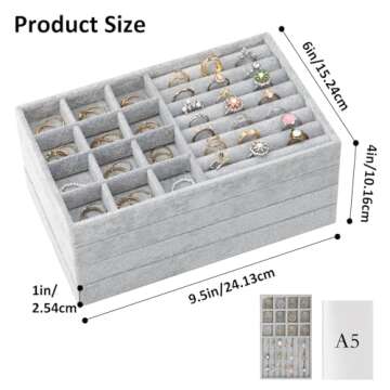 Fixwal Set of 4 Jewelry Tray, 9in Small Jewelry Organizer for Drawers, Stackable Display Tray for Rings, Necklaces, Bracelets, Earrings, Grey