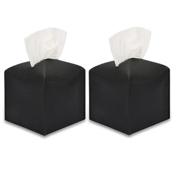 Fixwal Tissue Box Cover Holder, 5.12 x 5.12 x 5.12 Inches Decorative Organizer PU Leather Square Tissue Box, Waterproof Kleenex Box Covers, Tissue Box Cover for Car, Bathroom, Office and Home (Black)