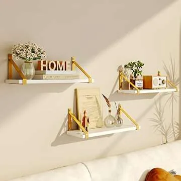 Show more Transform your home into an organized oasis with our exquisite Wall Floating Shelves, the perfect addition to any room! They are designed to maximize vertical space, adding extra storage without sacrificing floor area. Ideal for bedrooms, bathrooms, kitchens, or living rooms, these versatile shelves can hold everything from toiletries and towels to spices and small decor accents. Imagine adorning your walls with your favorite books, photos, trophies, or even displaying adorable houseplants – these shelves truly redefine functionality and style.