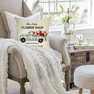 Show more If you're looking to enhance your home decor with a touch of rustic charm, look no further than the Fjfz Spring Summer Farmhouse Decorative Throw Pillow Cover. This exquisite pillow cover features a delightful design of a blue plaid truck adorned with beautiful roses, embodying the essence of a country-style aesthetic. Crafted from premium 100% cotton linen fabric, this cushion case is not only durable but also machine washable, ensuring easy care throughout the seasons. Its 18" x 18" size is perfect for adding that cozy touch to any sofa or chair, making it an ideal accessory for your living room, bedroom, or office space.