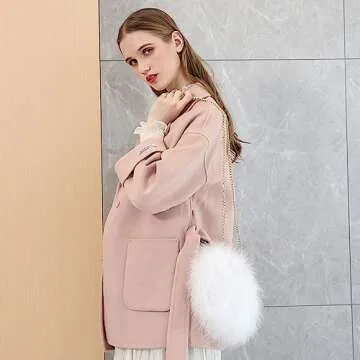 Flada Women's Faux Fluffy Feather Round Clutch Shoulder Bag White