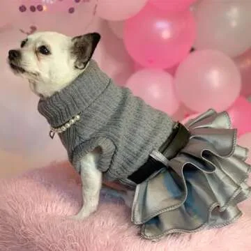Show more Elevate your furry friend's fashion game with the FLAdorepet Winter Warm Dog Christmas Sweater Dress. Designed specifically for small dogs and pet cats weighing between 2-4 lbs, this charming outfit is both stylish and functional. Its all-over grey color exudes a classic elegance, making it the perfect choice for daily wear or festive occasions. The standout feature is its lovely tutu skirt paired with a chic leather belt, ensuring your pet standout in any crowd. With cozy materials and a comfortable design, this sweater dress is a must-have for your little companion!