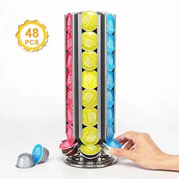 Flagship Coffee Pod Capsule Holder for Dolce Gusto, Metal Carousel Capsules Pods Organizer Rack, 48 Pods Silver