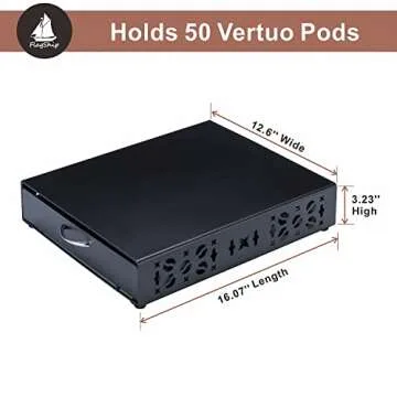 Show moreIntroducing the FlagShip Nespresso Pod Holder, your ultimate solution for organizing and elegantly displaying your coffee pods while maximizing your counter space. This thoughtfully-designed coffee pod organizer not only boasts the capacity to hold up to 50 Nespresso Vertuo pods, but its modern aesthetic will seamlessly blend into any coffee bar setup, elevating your coffee experience to new heights. Crafted with durability in mind, this sleek holder stands out with its all-metal frame, ensuring longevity and sturdiness unlike conventional plastic alternatives. If you’re a coffee enthusiast or just enjoy morning brews, this pod holder is a must-have addition to your kitchen.