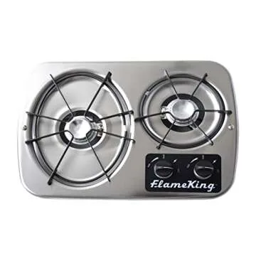 The Flame King cooktop features two powerful burners, including a 7200 BTU oval grate and a 5200 BTU circular grate, ensuring that you can prepare delicious meals wherever your travels take you. Whether you're whipping up a quick breakfast or a hearty dinner, this cooktop can handle it all with ease!