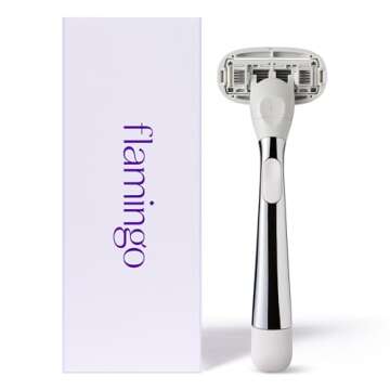 Flamingo Razors for Women, 1 Women's Razor Handle (Chrome), 5 Blade Razor for Women with Aloe and Shea Butter Glide Strips