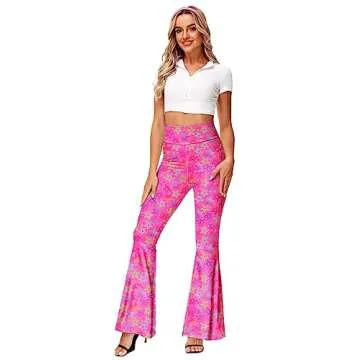 Flare Pants for Women 70s 80s Dance Costume Bell Bottom Pink Disco Hippie Pants S