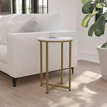 Flash Furniture Hampstead Collection End Table - Modern White Marble Finish End Table - Crisscross Brushed Gold Frame