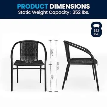 Show moreTransform your dining experience with the Flash Furniture Modern Rattan Indoor/Outdoor Restaurant Dining Chairs. This exquisite set of two chairs is not only an ideal choice for restaurants, bistros, and cafes but also perfect for enhancing your patio, sunroom, or dining room. Featuring a sleek and refined rattan design, these chairs embody sophistication while welcoming a casual, relaxed vibe into any space. The carefully crafted woven structure exudes elegance, ensuring these chairs make a striking statement wherever they are placed.
