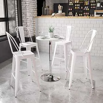 Show more The Flash Furniture Pearl 23.75" Round Wood Dining Table is the perfect addition to any home or venue, offering a blend of style and function that makes it versatile for numerous occasions. This unique dining table features a beautiful 0.75" thick white wood swivel tabletop that adds timeless elegance to your space while ensuring you have the additional table space you need, whether it’s for intimate gatherings or larger celebrations. Its adjustable height feature allows the table to transform from standard height (26.25") to counter height (35.75") with ease, making it an ideal choice for hosting or casual dining—all adjustable with just the turn of a handle located conveniently under the top. Designed with guests in mind, its narrow footprint enables you to easily set up larger tables alongside it without intruding on valuable social space.