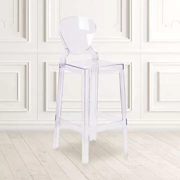 Flash Furniture Theo Ghost Barstool with Tear Back in Transparent Crystal