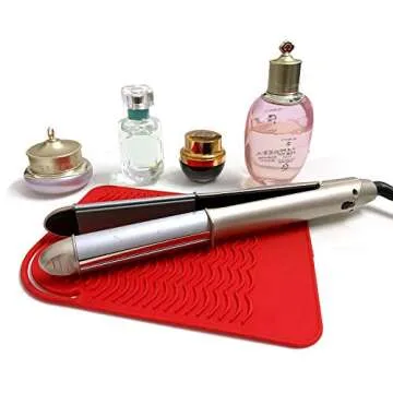 Flat Iron Travel Mat, Curling Iron Counter Protector with Heat Resistant Glove for Curling Irons, Hair Straightener, Flat Irons and Hair Styling Tools, 9” x 6.5”, Red