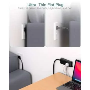 Flat Plug Power Strip, Addtam 5 ft Ultra Flat Extension Cord with 6 Outlets Extender, No Surge Protector for Cruise Ship, Travel, Dorm, Home Office, ETL Listed