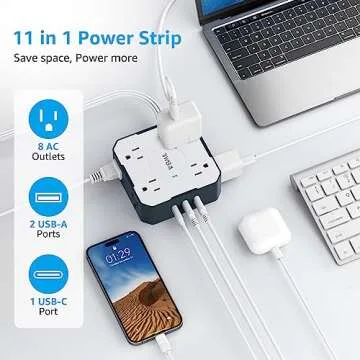 Flat Plug Power Strip, WEIMIL 5Ft Ultra Thin Flat Extension Cord, 8 Widely Outlets, 3 USB Ports(1 USB C), Wall Mount, Compact Power Strip Surge Protector for Travel Home Office Dorm Room