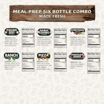 Show more Transform your meal prep experience with Flavor God's Meal Prep 6 Pack, a delightful ensemble of seasonings crafted to elevate your everyday meals. This amazing collection includes Garlic Lovers, Chocolate Donut, Pizza, Everything, Italian Zest, and Ranch, each flavor thoughtfully designed to add depth and excitement to your dishes. Gone are the days of bland meals; now you can infuse each recipe with mouth-watering tastes that leave your palate truly satisfied.