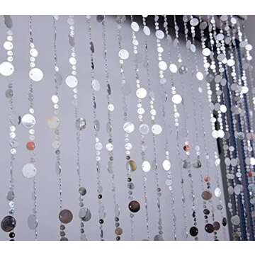 Show moreIntroducing the **FlavorThings Silver Bubble Beaded Curtain**, a stunning addition to any space that effortlessly combines elegance with functionality. Measuring **3 feet wide by 6 feet long**, this curtain is composed of **23 alternating sizes of round metallic discs** that shimmer and dance as light reflects off their surfaces. The use of **gold metallic over acrylic** gives off a beautiful allure, while its triple-dipped paint ensures vibrant color retention and durability.