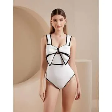 FLAXMAKER Black and White Swimsuit Bow-tie Decor One Piece Bathing Suit
