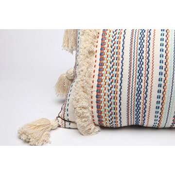 Flber Lumbar Throw Pillow Decorative Pillows Tassel Textured Woven Sham,12"X20"