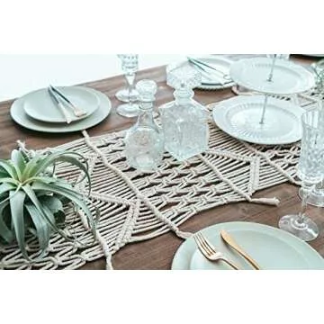 FLBER OUTLET Macrame Table Runner Handwoven Boho Wedding Table Decoration Bedding Blanket 13.8"x 118"