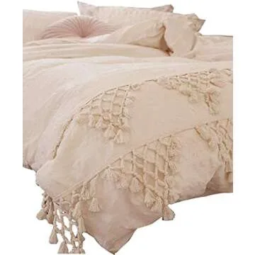 Transform your bedroom into a bohemian oasis with this exquisite set of 2 handmade macrame pillow shams. Measuring a generous 19.7 inches by 35.5 inches, each sham is crafted from 100% soft washed cotton, making them not only visually appealing but also incredibly comfortable. The beautiful tassel trim adds a touch of elegance and artistic flair that elevates any bedding ensemble. Ideal for those who love a shabby chic or bohemian aesthetic,...