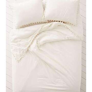 Flber White Pom-Fringe Duvet Cover King Queen Queen Size 86in x 90in