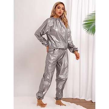 Fldy Sauna Suit Grey PVC Long Sleeve Top Trousers Weight Loss Gym Tracksuit