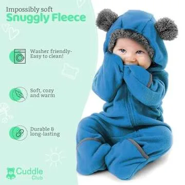 Show moreIntroducing the ultimate climate control solution for your little ones - the Cuddle Club Fleece Jumpsuit. This cozy, one-piece jumpsuit is designed to keep babies and kids warm in various environments, offering unparalleled comfort and functionality. The ultra-soft fleece material wraps them in warmth, ensuring they remain snug whether indoors or outdoors. With rollover cuffs that convert into mittens and booties, this versatile outfit adapts to changing temperatures, making it perfect for all seasons.