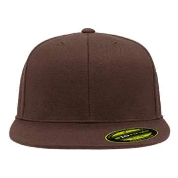 Flexfit Premium 210 Flatbill Fitted Baseball Hat Bundle with THP Hat & Clothing Brush (L-XL|Brown)