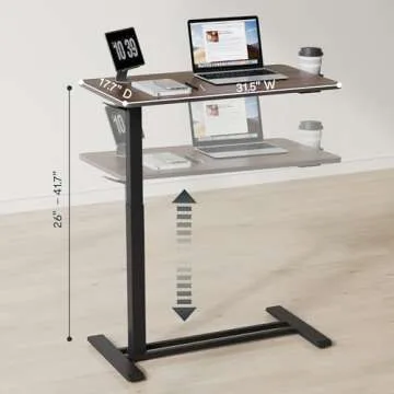 FLEXISPOT Adjustable Overbed Bedside Table with Wheels Pneumatic Mobile Standing Desk Laptop Desk Rolling Computer Cart Movable Table Hospital Home Use(27.6" W x 15.7" D, Mahogany Table)