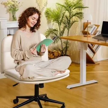 FLEXISPOT Cross Legged Office Chair Armless Desk Chair Comfy Wide Seat Criss Cross Chair with Wheels Vanity Chair for Living Room Bedroom Study Room(White Light Beige)