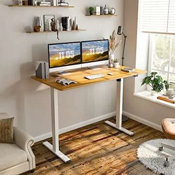 FLEXISPOT Electric Standing Desk 55 x 28 Inches, Height Adjustable Desk Sit Stand Up Desk with Whole-Piece Desk Board Home Office Desks Vici (White Frame + Maple Top)