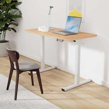 FLEXISPOT EN1 Bamboo Texture Standing Desk, 48 x 24 Inches Whole-Piece Electric Adjustable Height Desk Sit Stand Desk(White Frame + Bamboo Texture Top, 2 Packages)